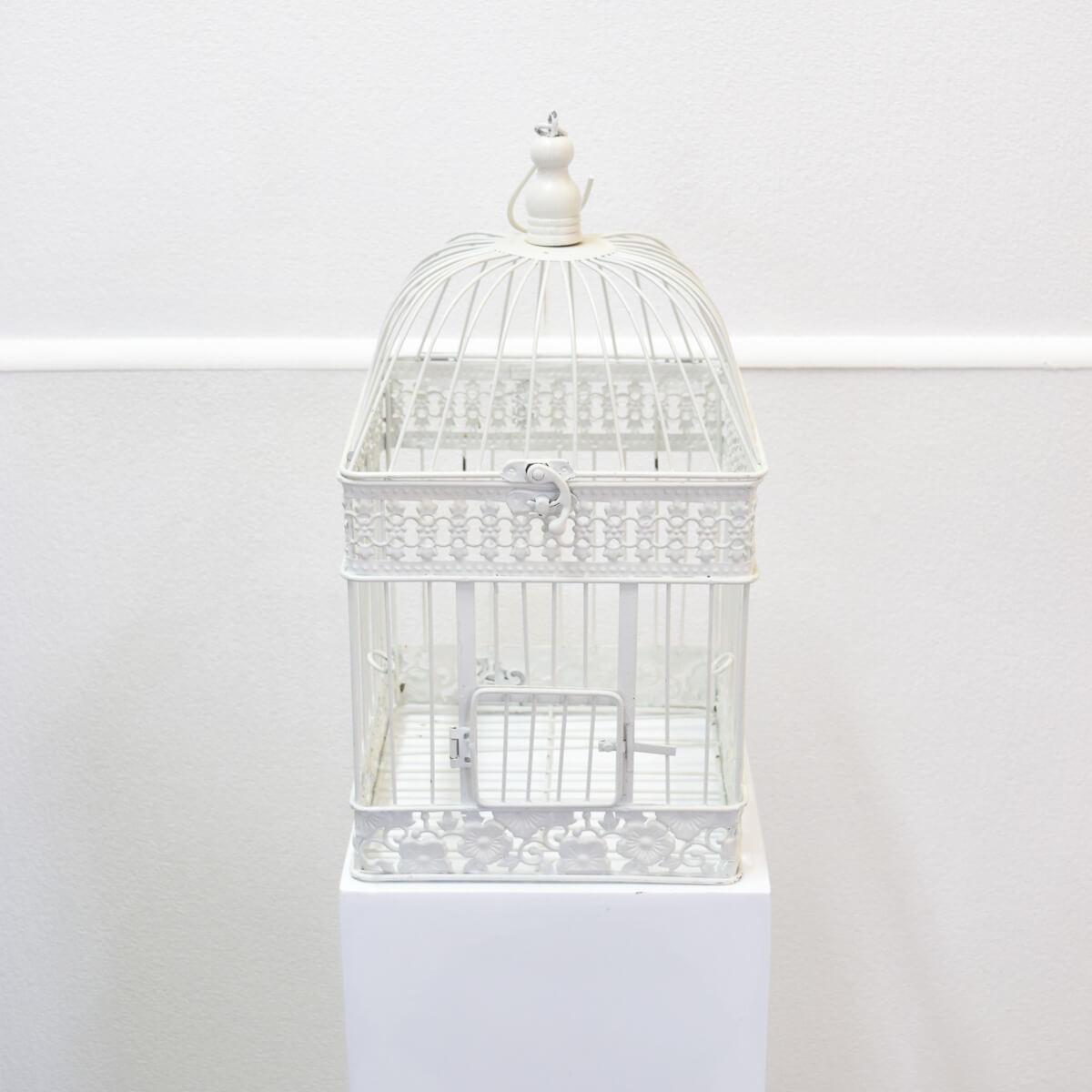 Birdcage – large white cage for gift cards. One only 42cm high x 23cm x 23cm