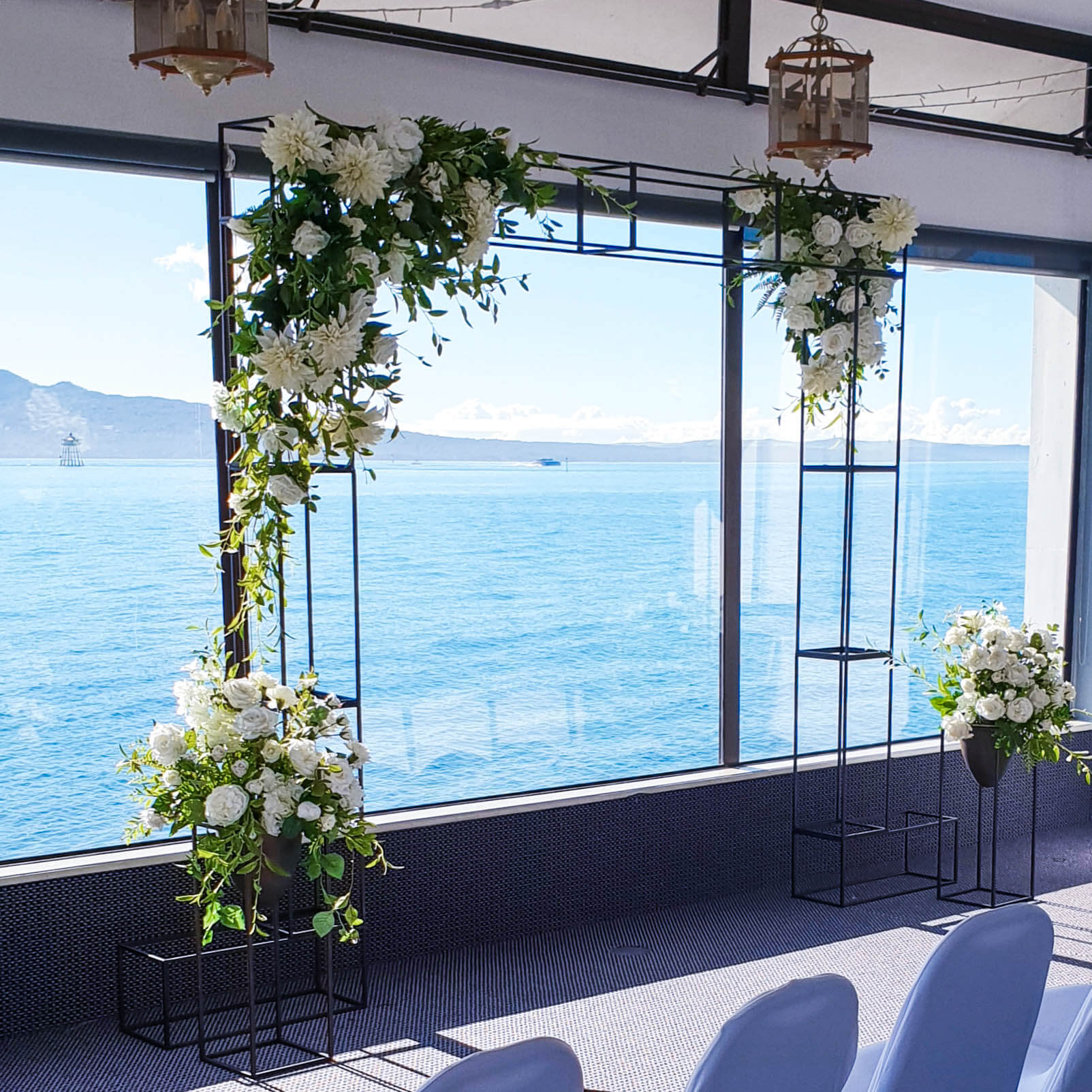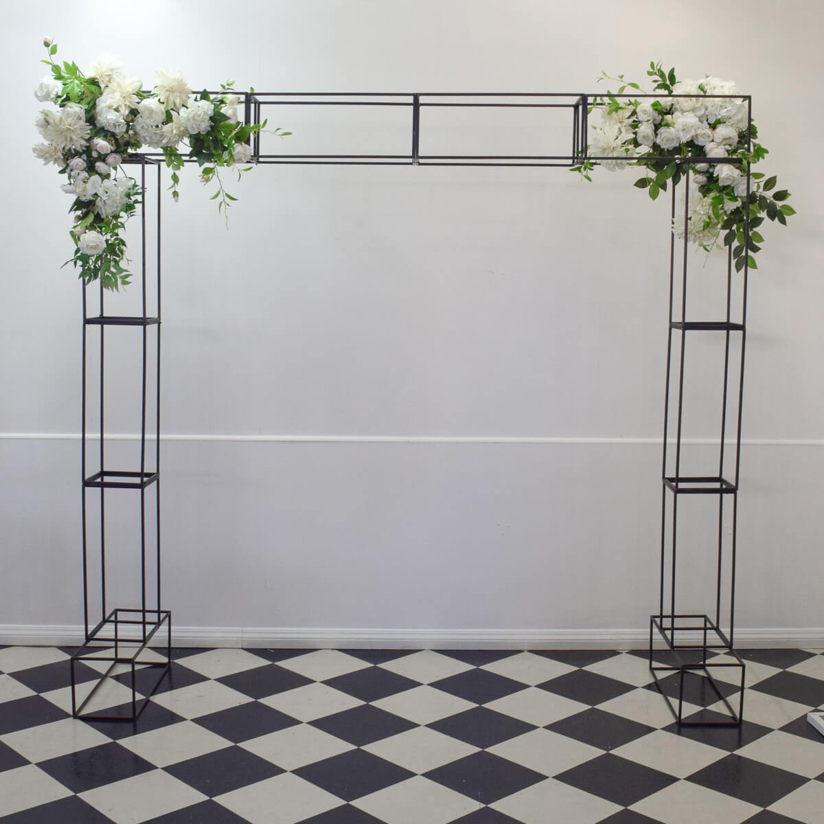 Box Arches Various Sizes 3 or 4 is a modern geometric styled arch standing 3 or 4 boxes high and 3 or 4 boxes across the top. Creating an arch across and high. This is the perfect DIY arch to set up as it is light weight, comes apart easily to fit in most vehicles and is extremely easy to construct and attach flowers to. Balloons also look great on this arch. The arch with flowers attached to the top corners as pictured  can be added.  Request a quote. For added styling the plant stands with flowers are available as additional extras.   These boxes are stunning centrepieces, topped and dripping with flowers   We have flower arrangements available to view, if there is anything you are after that we do not have, please contact us. Please see other previous setup images here
