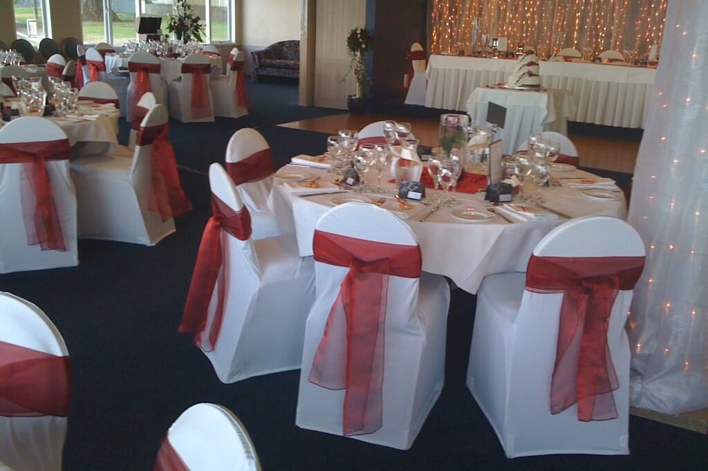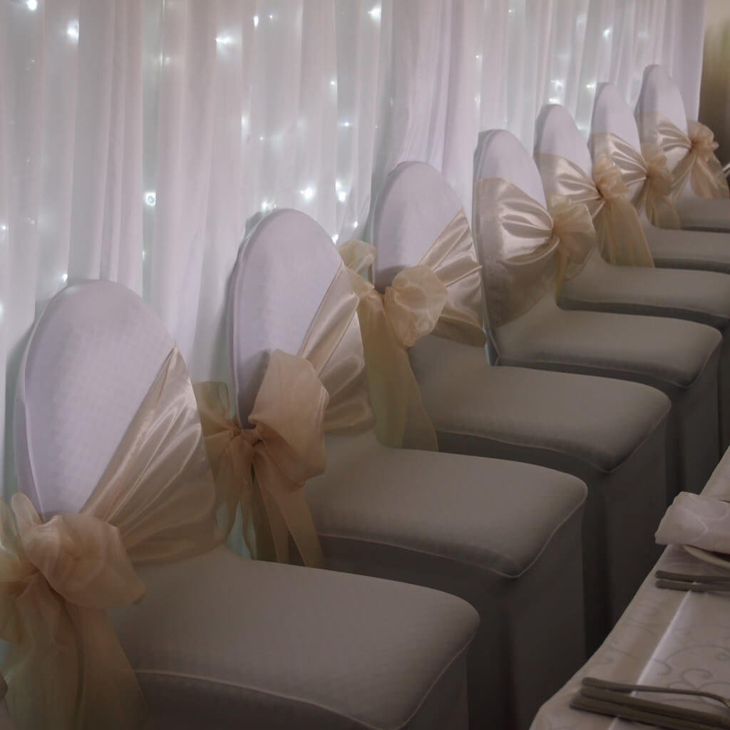 White wedding round top chair covers