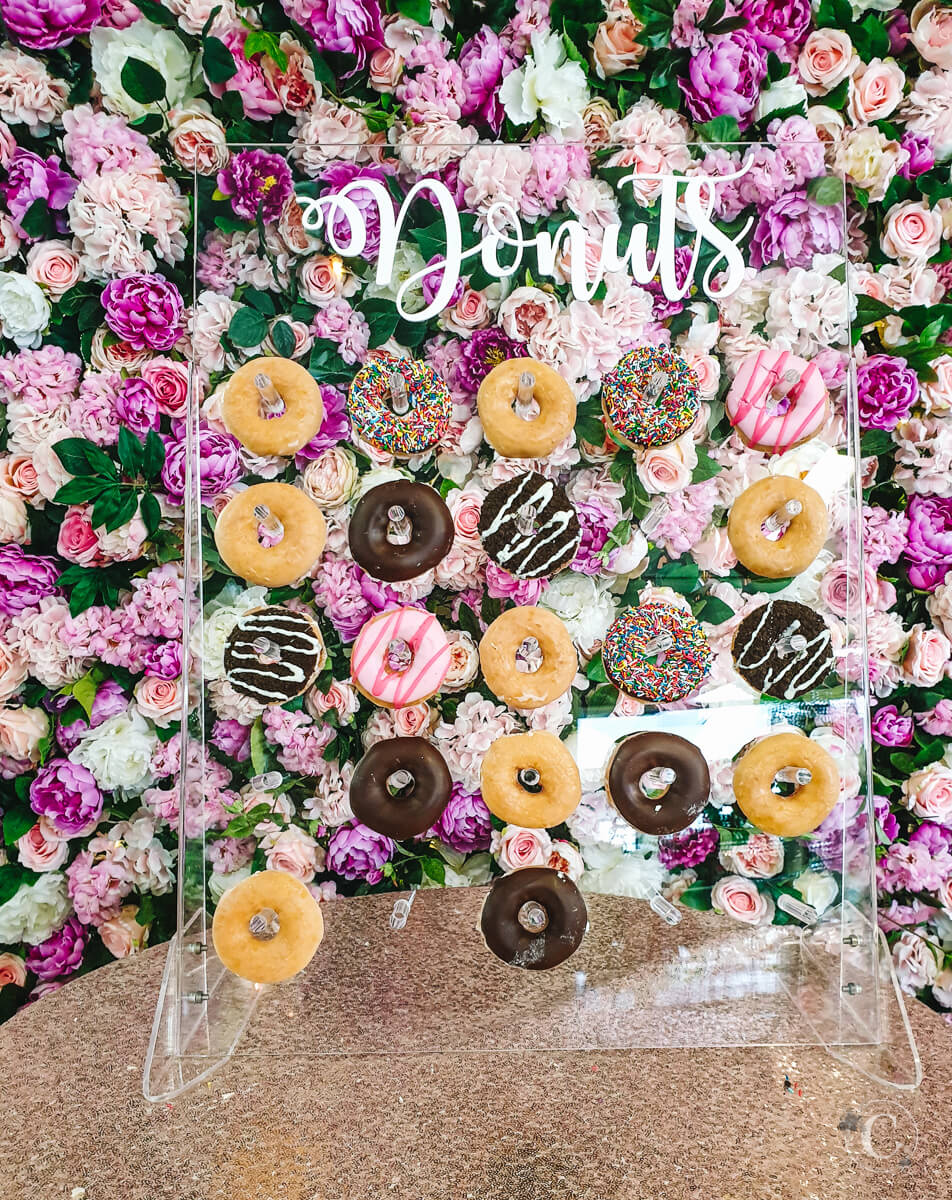 Donut wall made from acrylic is freestanding and holds 25 or 50 donuts. A great wall to sit on your dessert table loaded with delicious donuts. This acrylic donut wall measures 60cm x 80cm and comes with a white donut sign preattached. Donuts not included.