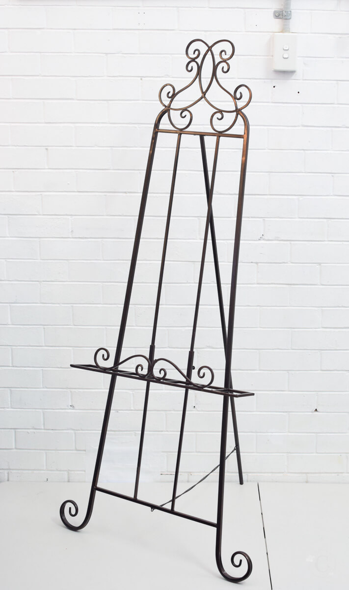 Easel | bronze metal floor standing easel with adjustable arms. One bronze metal easel available.  They are ideal for wedding seating plans, photo or artwork displays, event welcome signs.