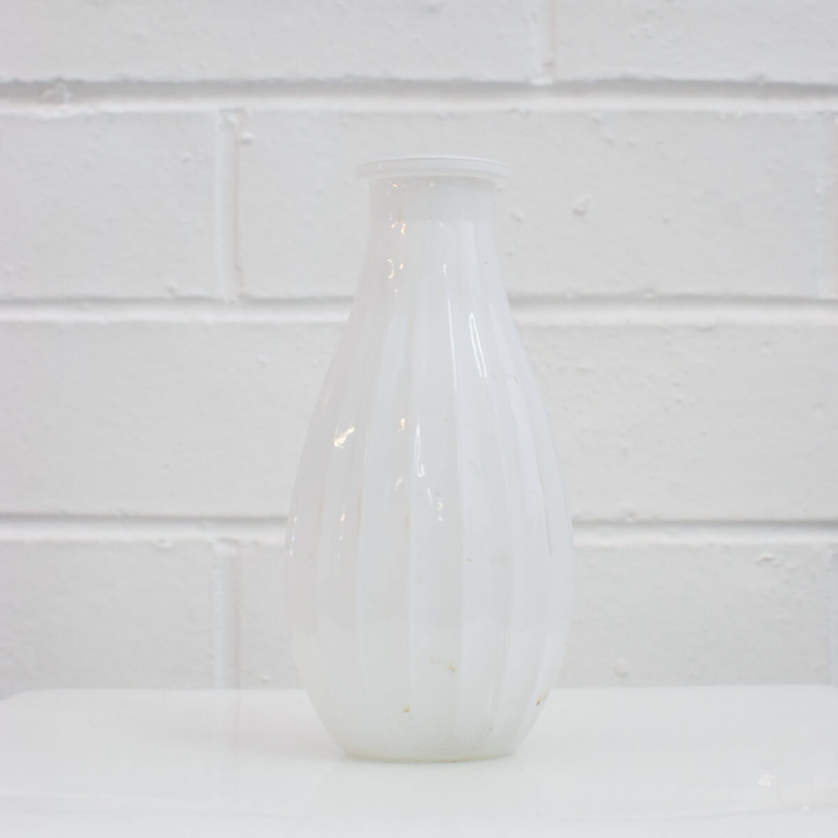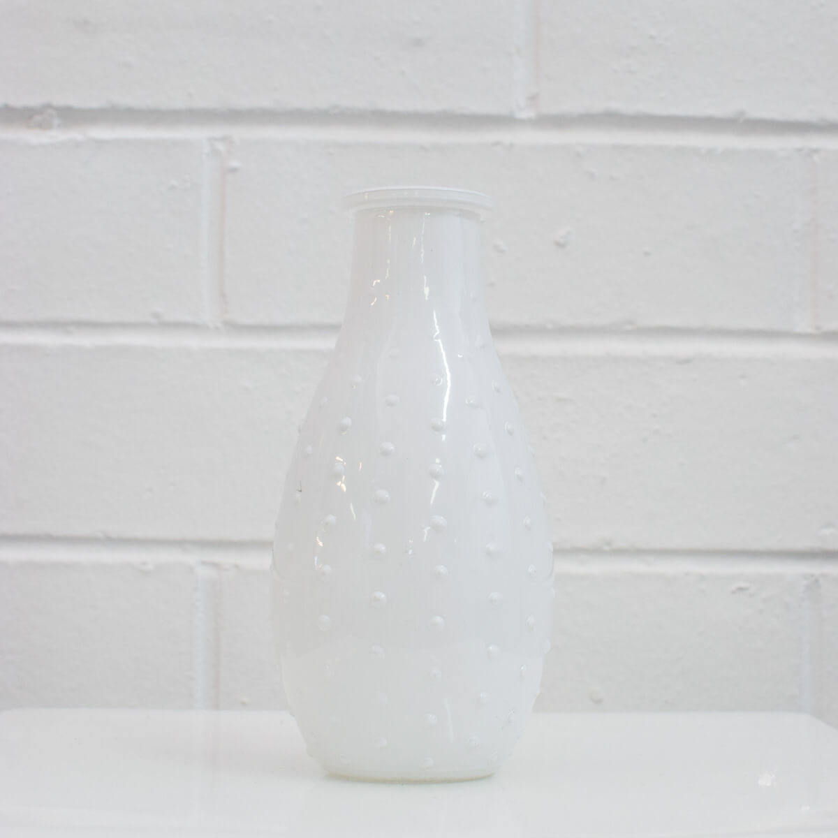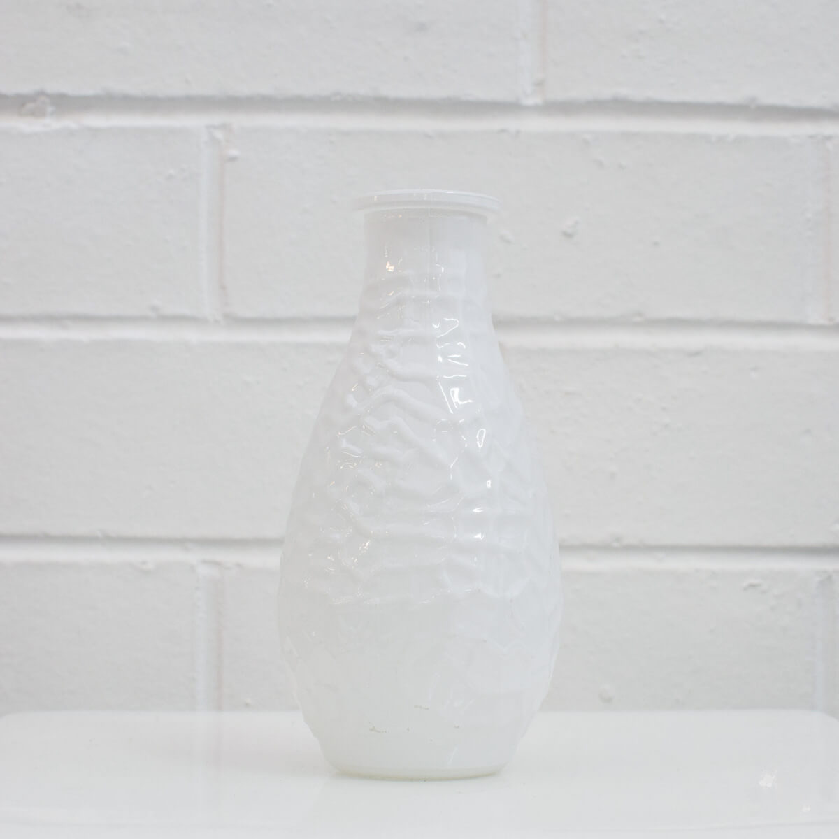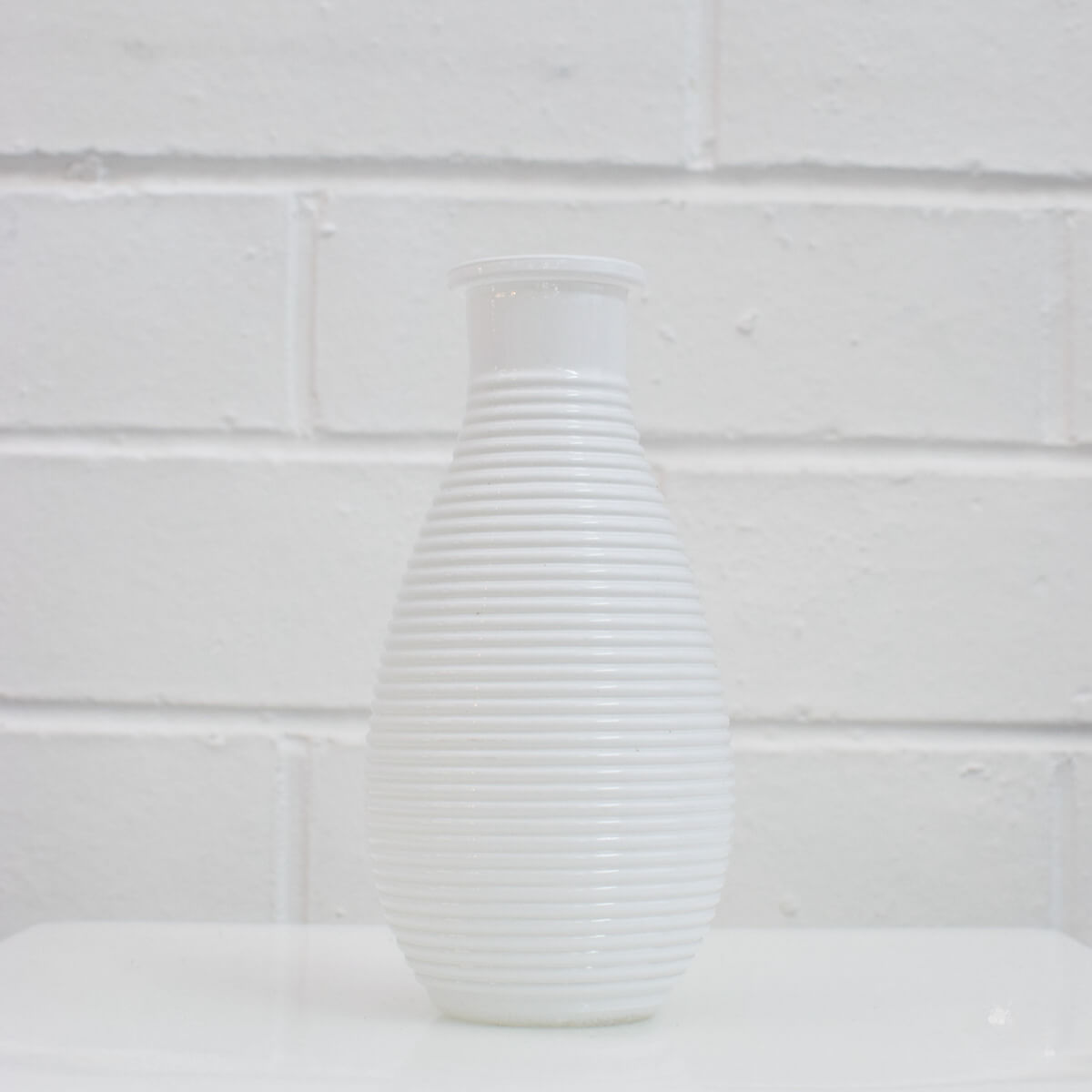 Glass Mixed Pattern Bud Vases Our white glass mixed pattern bud vases stand at 13cm tall. With the addition of delicate florals such as gypsophila these vases would add a soft natural look to your wedding tables. 30 vases available to hire.