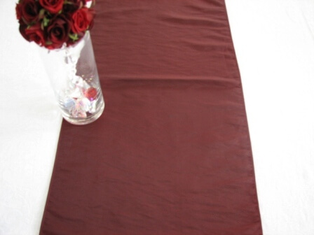 Rich ruby red table runner in satin fabric with fabulous sheen. Use as a table accessory to compliment the ruby chair covers. 40 at 35cm x 300cm