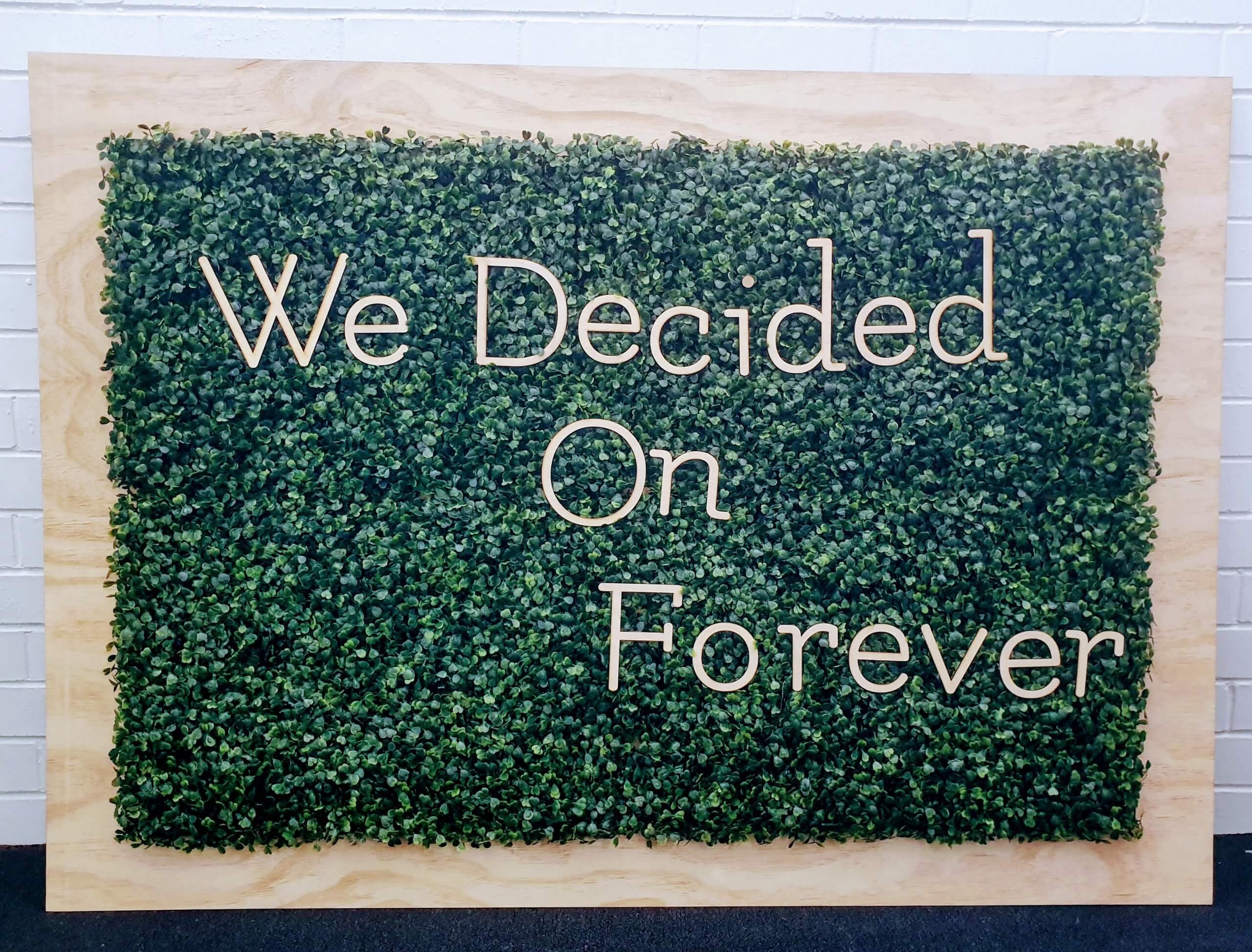 Sign – We Decided on Forever This sign is large enough to be a feature backdrop to your bridal table alternatively it would be perfect for an engagement party backdrop. A large easel is ideal to display this plywood cut sign on a hedge wall. A plywood backing frames this sign enabling it to be…