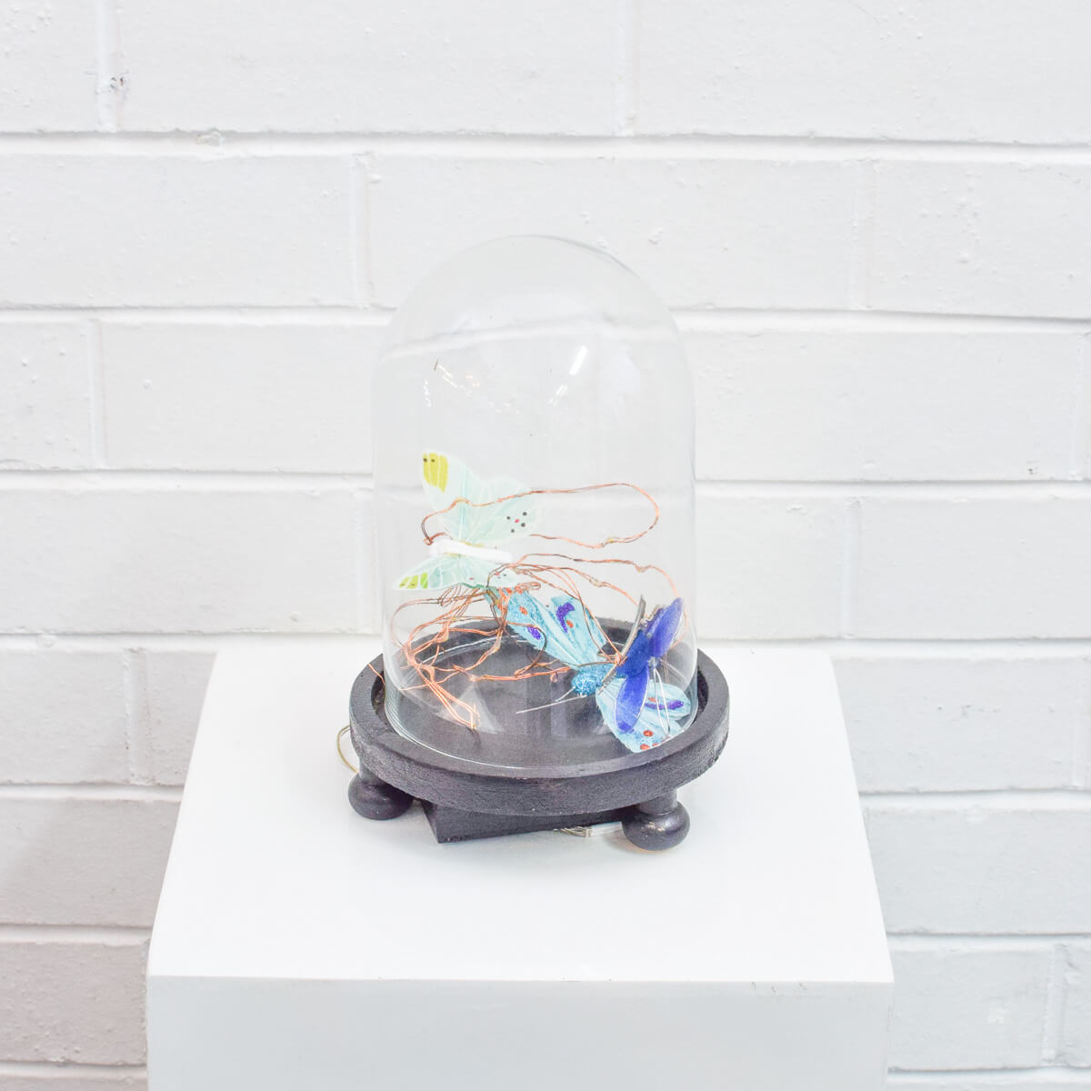 Small Glass Dome Small Glass Dome on a wooden base with attached seed lights. Accessories not included. Create a special centrepiece with these lovely domes. Measures 22cm high x 15cm base. 11 Available.