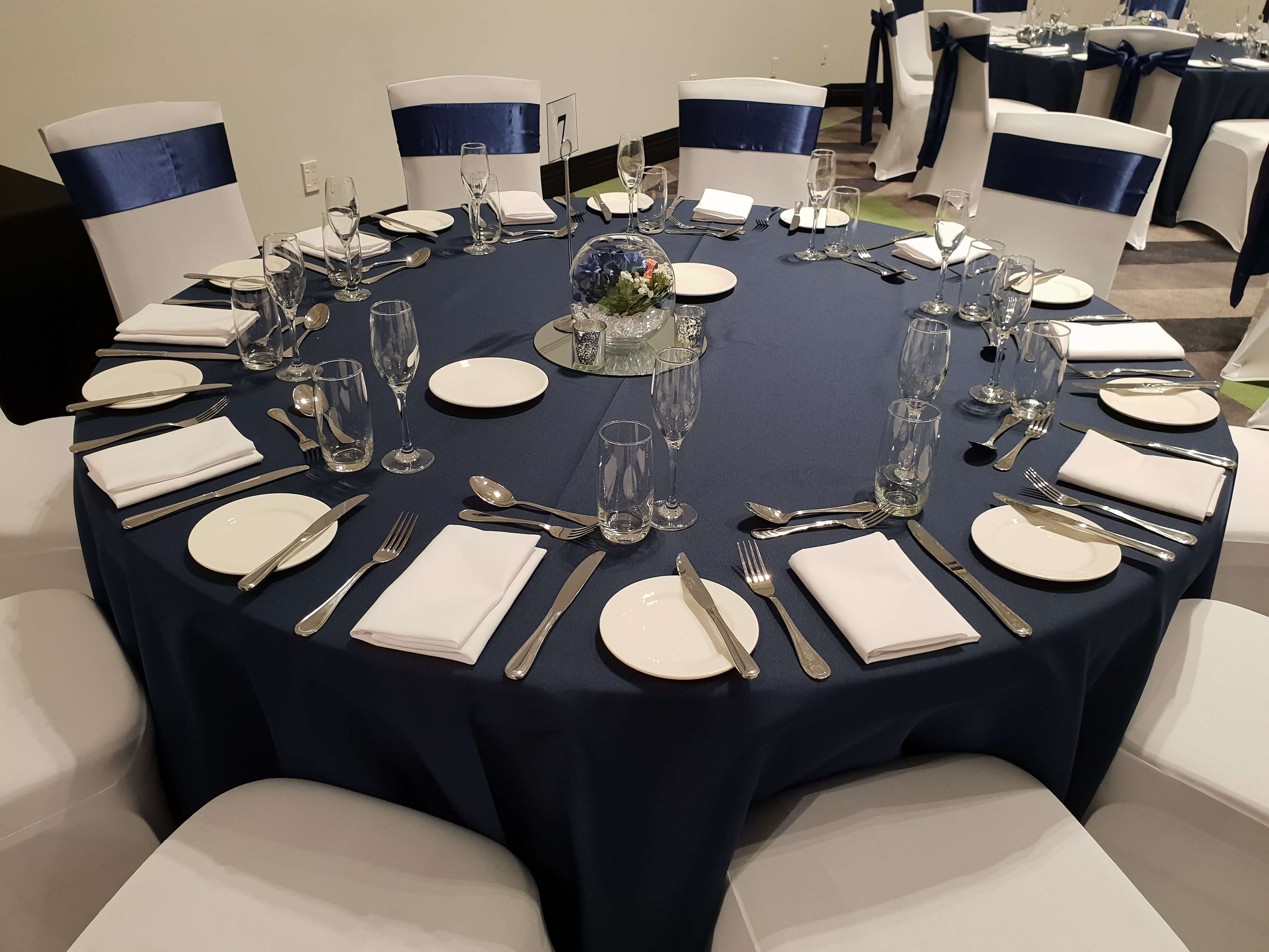 3.2m round navy blue table cloth to fit 1.8m table to ground.