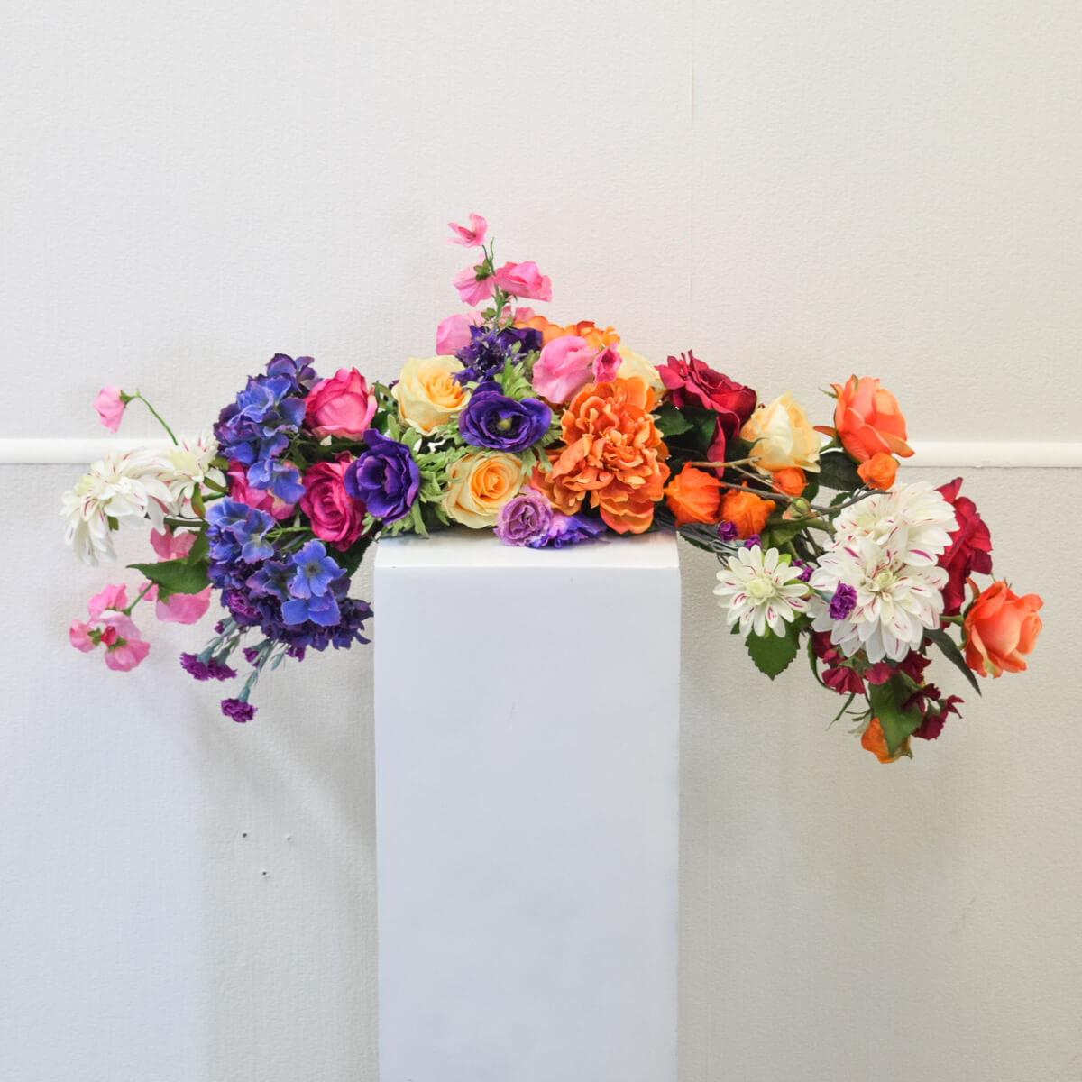 Vibrant Floral Arrangement, ideal for a corporate event or birthday party. These flowers are colourful and will fit your summery theme dreams! If you require more than one of these floral arrangements, let us know!
