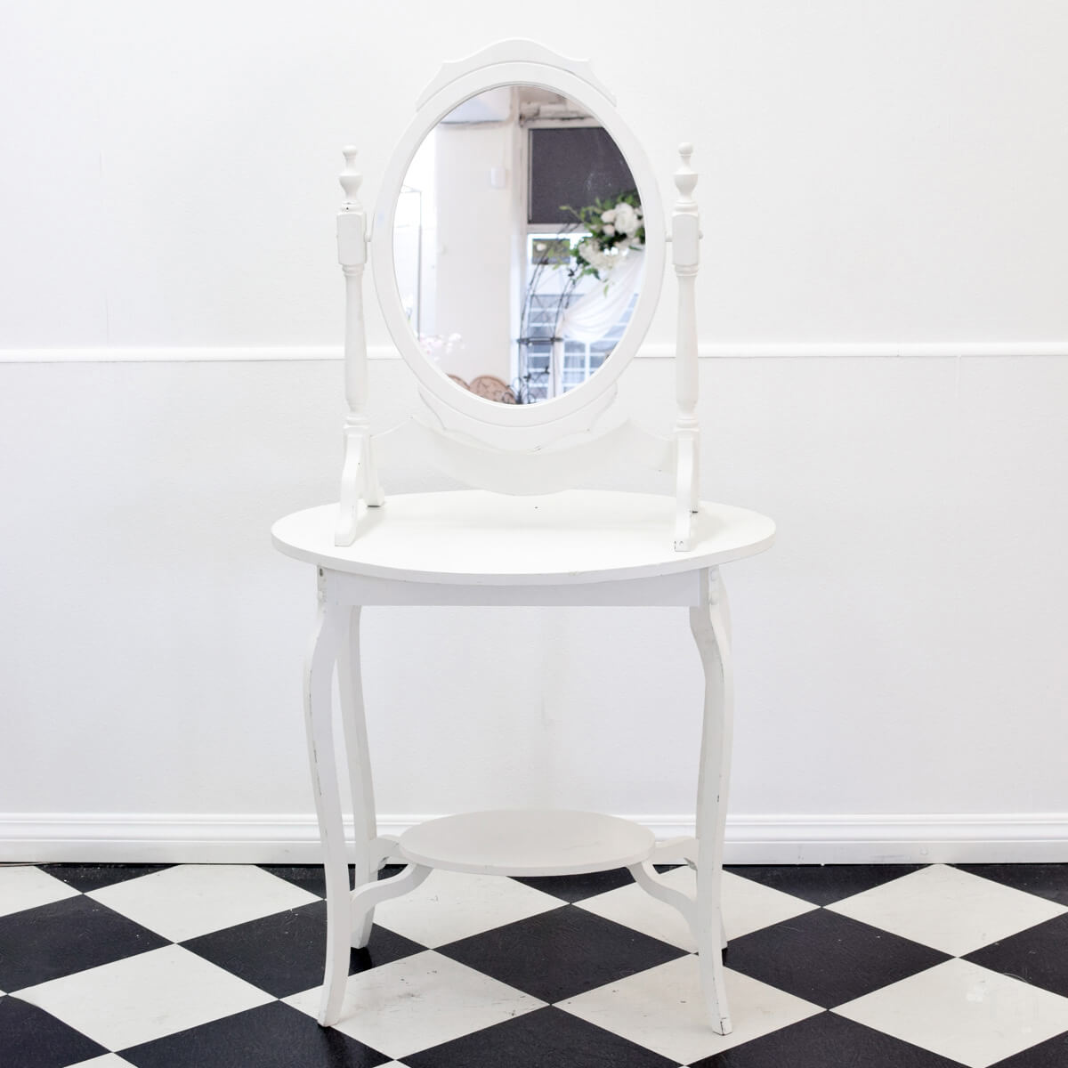 Vintage Mirror on Stand Beautiful Vintage White Frame on Stand. Team this lovely sign with our Vintage White Table for a lovely chic welcome to your very special day.