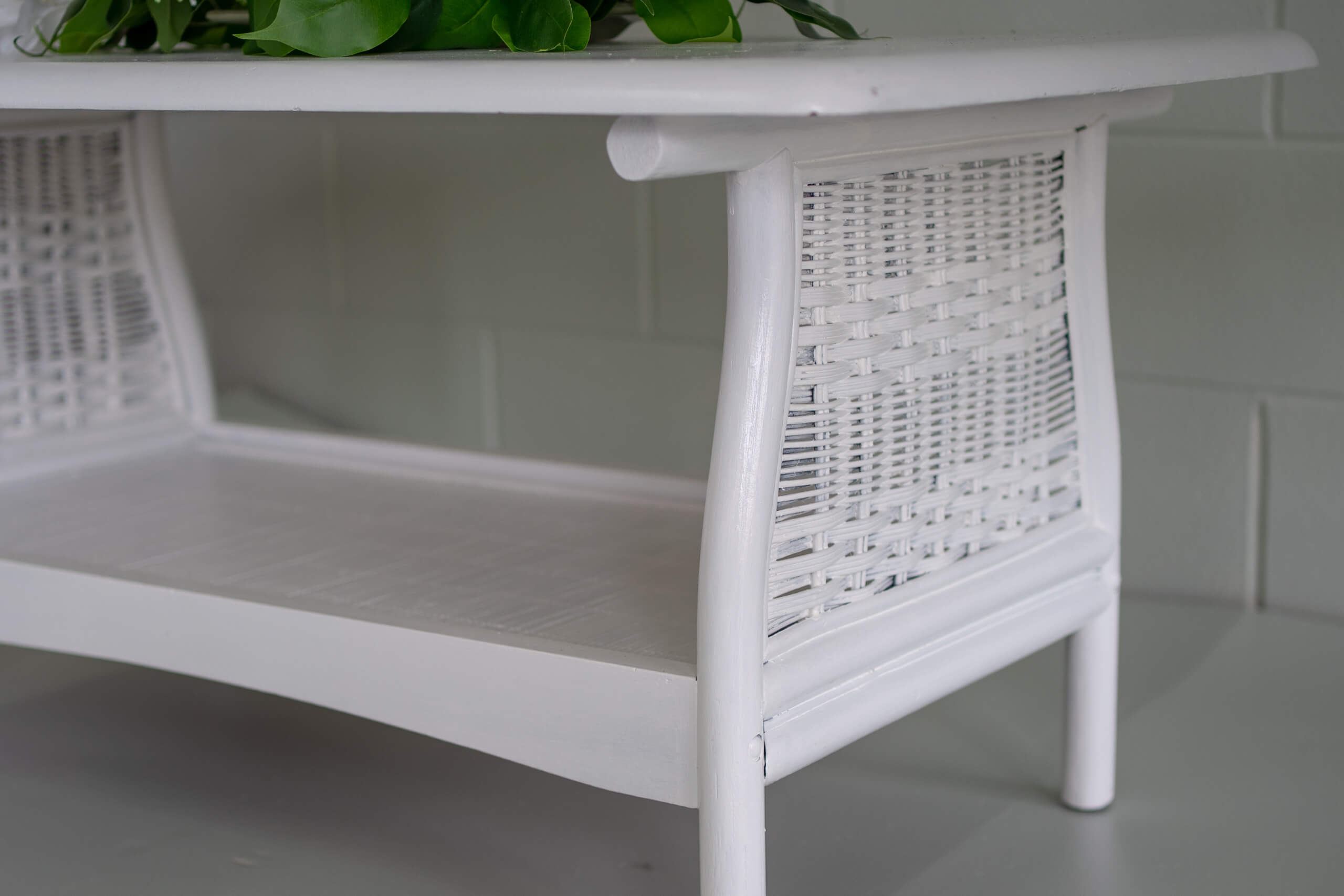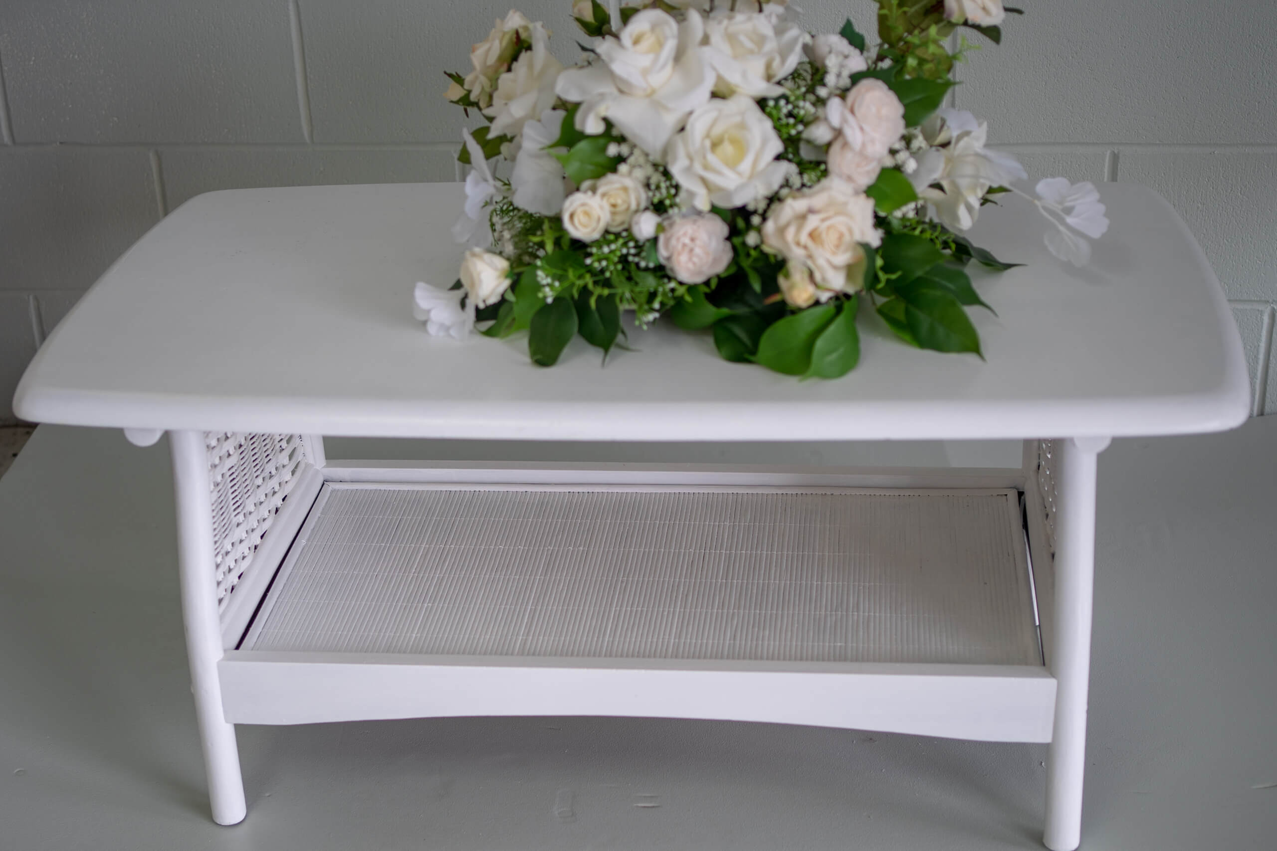 A White Cane Coffee Table is Available to hire with the lovely white peacock chairs.  This is part of our growing rattan collection.