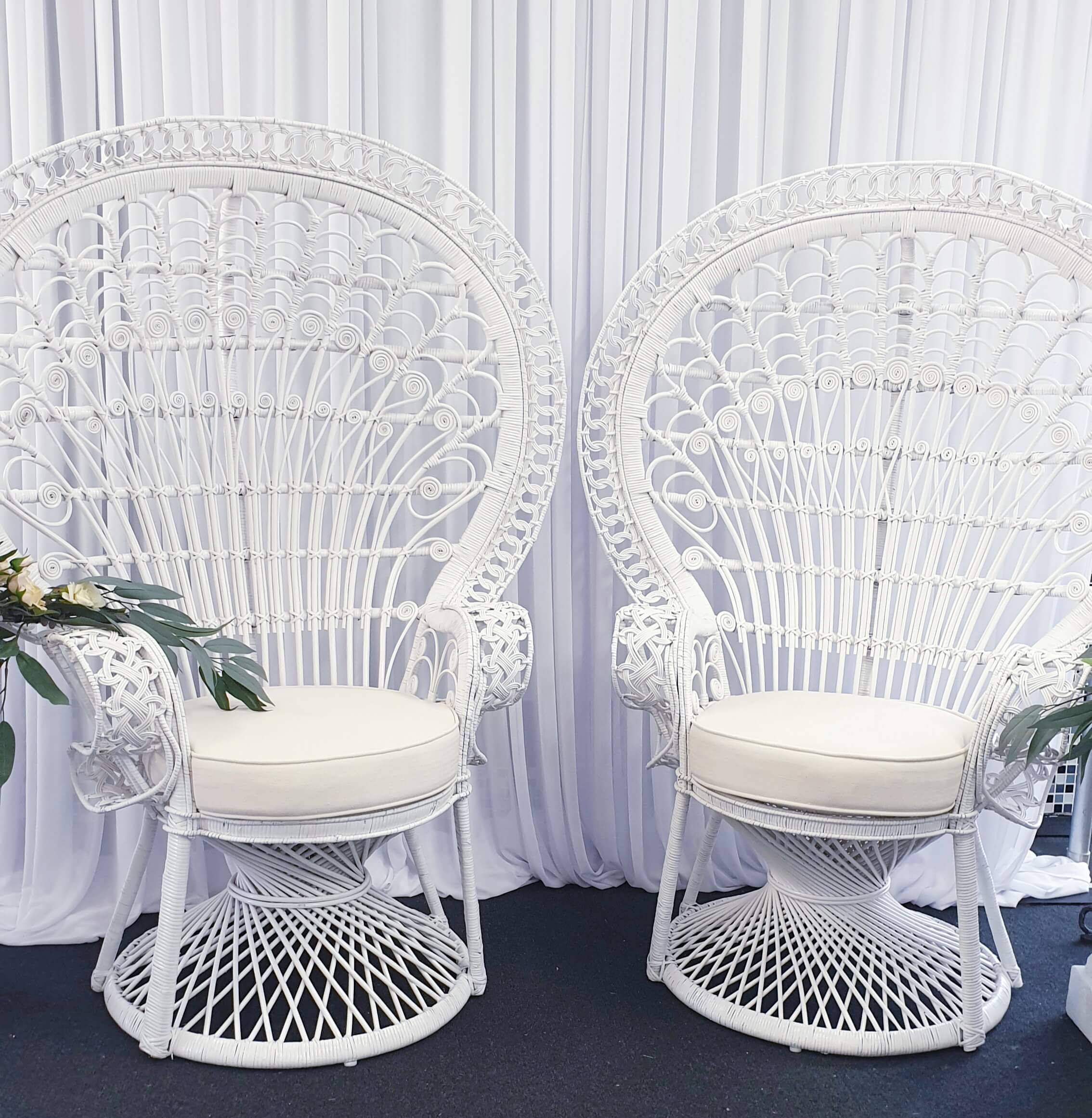 2 White peacock chairs available